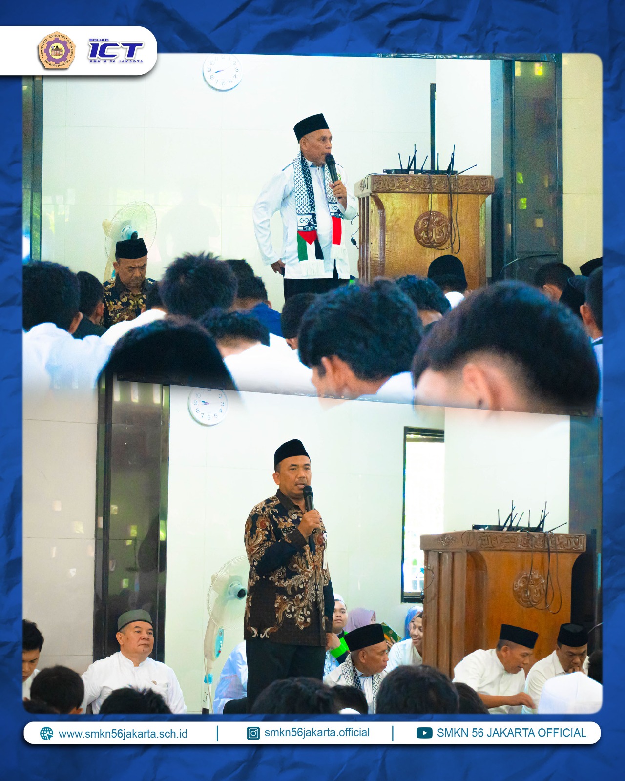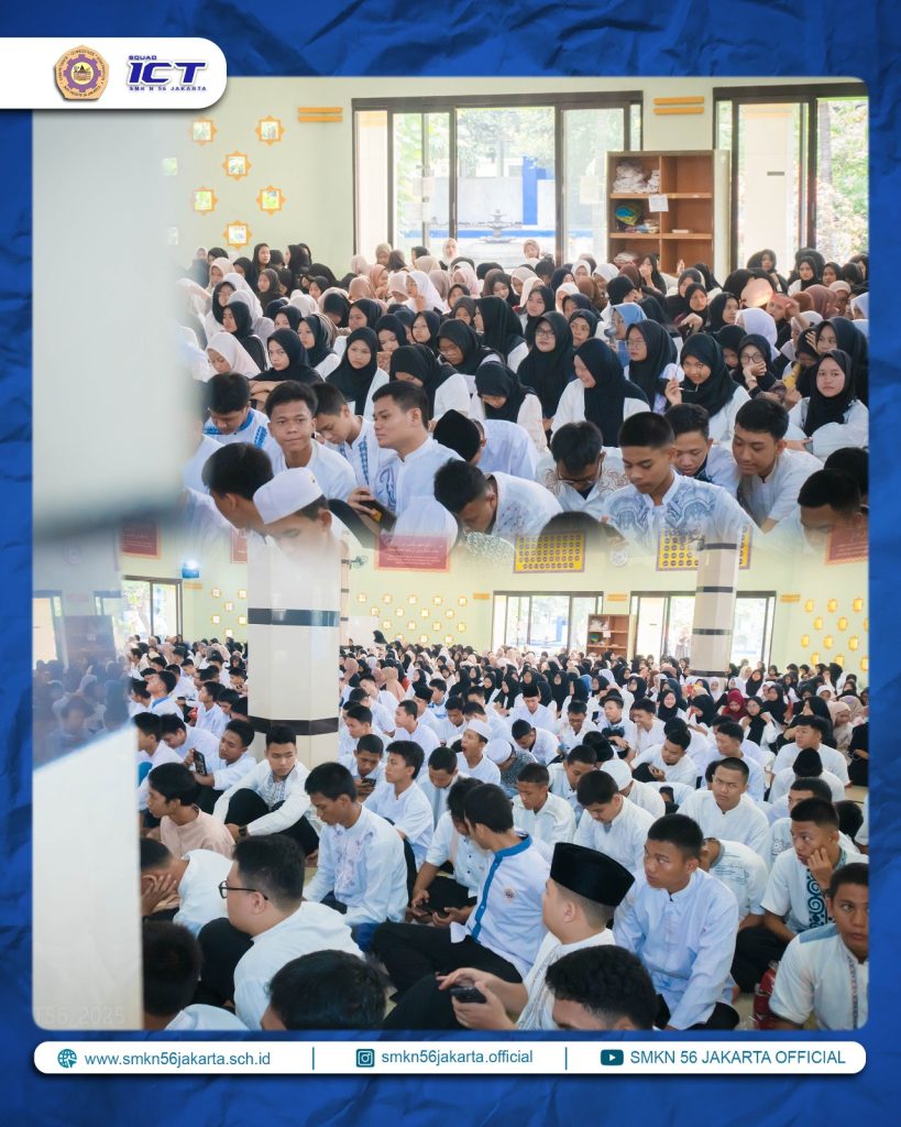 SMKN 56 Jakarta menggelar peringatan Maulid Nabi Muhammad SAW sebagai momen refleksi dan penguatan nilai-nilai kebajikan. Kegiatan ini dihadiri oleh siswa, guru, serta jajaran tata usaha sebagai bentuk penghormatan dan rasa syukur atas teladan akhlak yang ditinggalkan Rasulullah SAW.